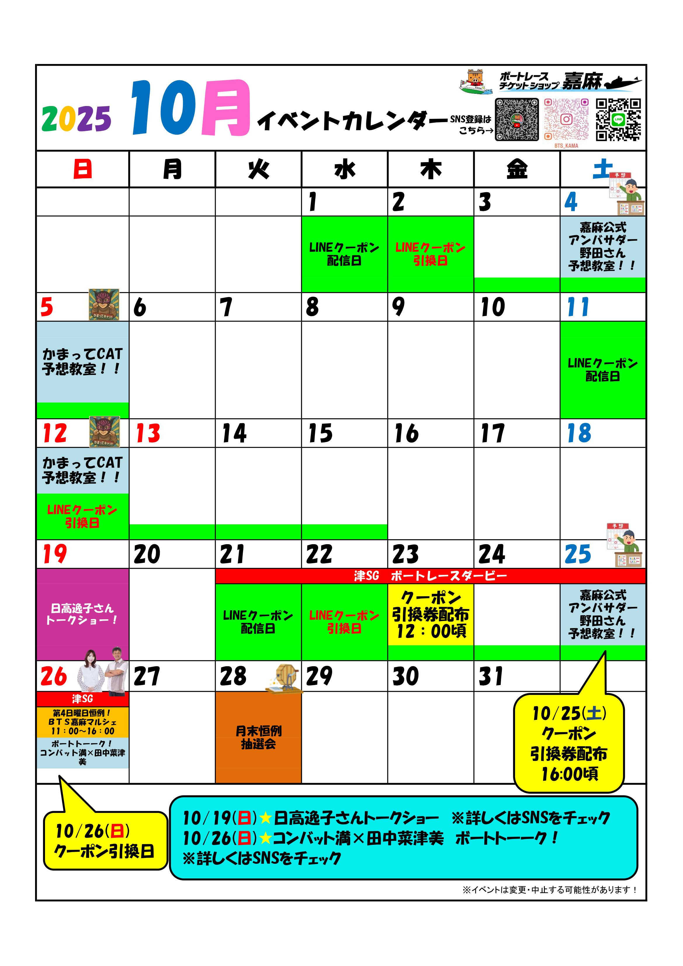 ボートレースチケットショップ嘉麻 10月イベントカレンダー♪