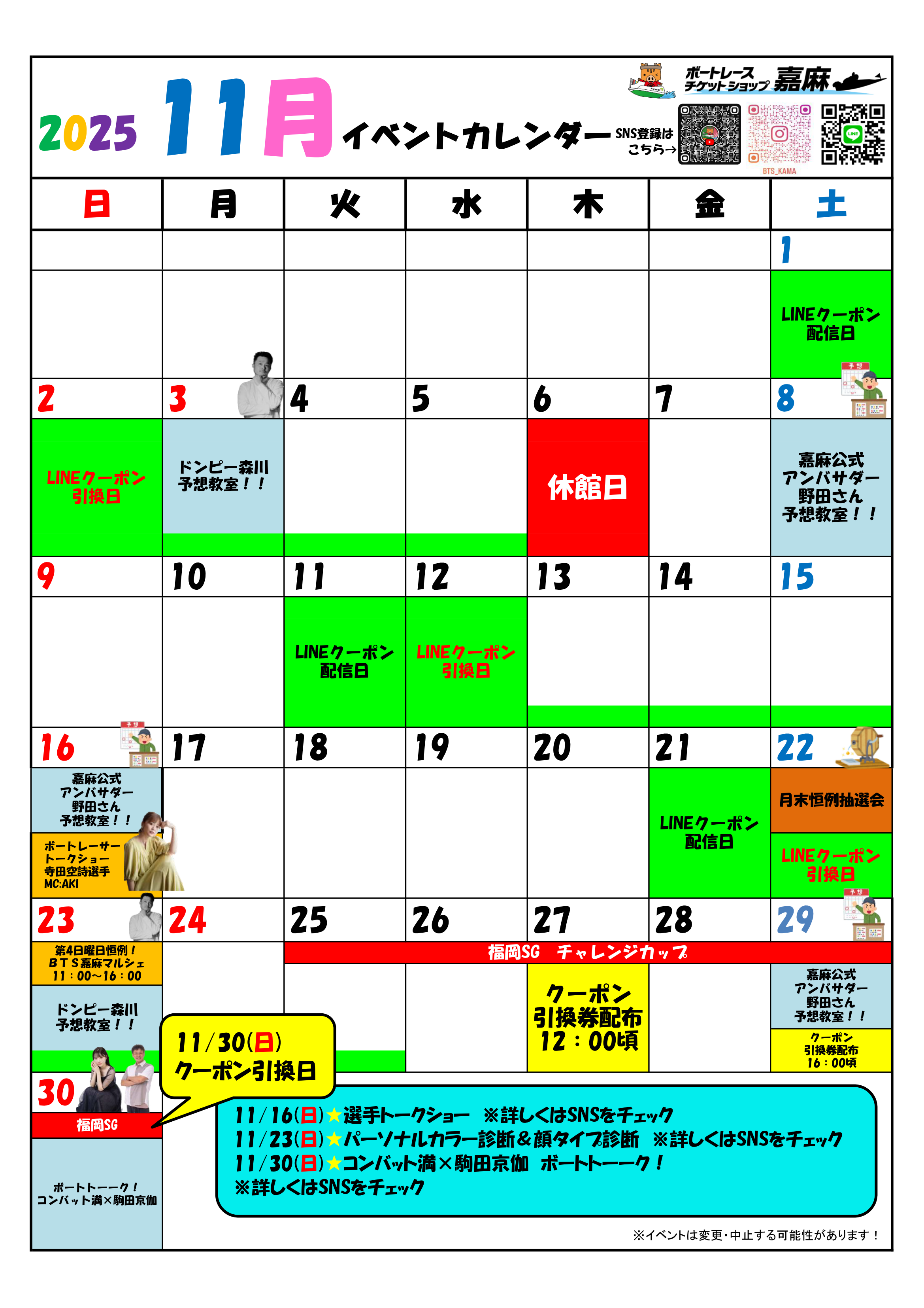 ボートレースチケットショップ嘉麻 11月イベントカレンダー♪