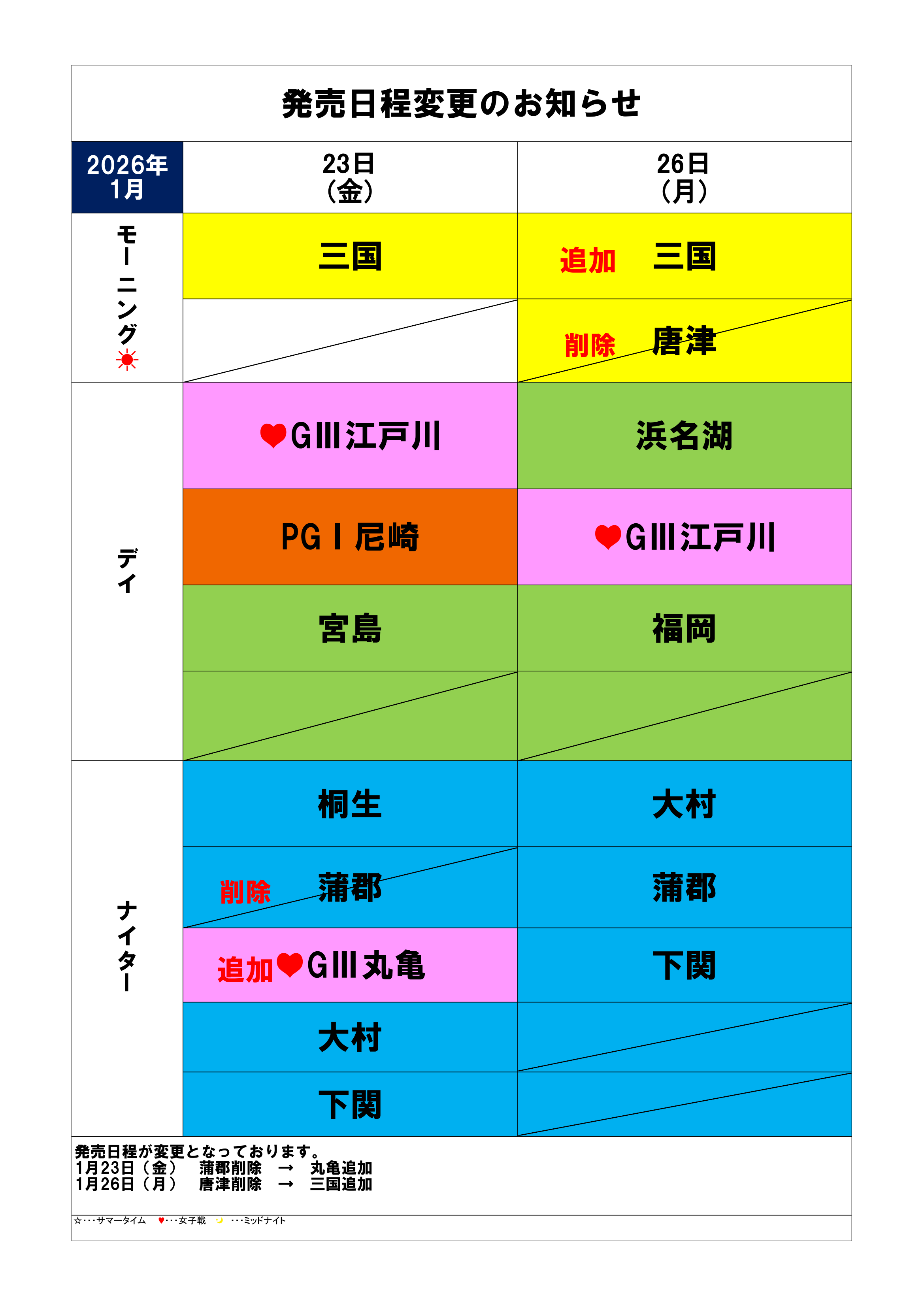 1月23日(金)・26日(月)発売日程変更のお知らせ